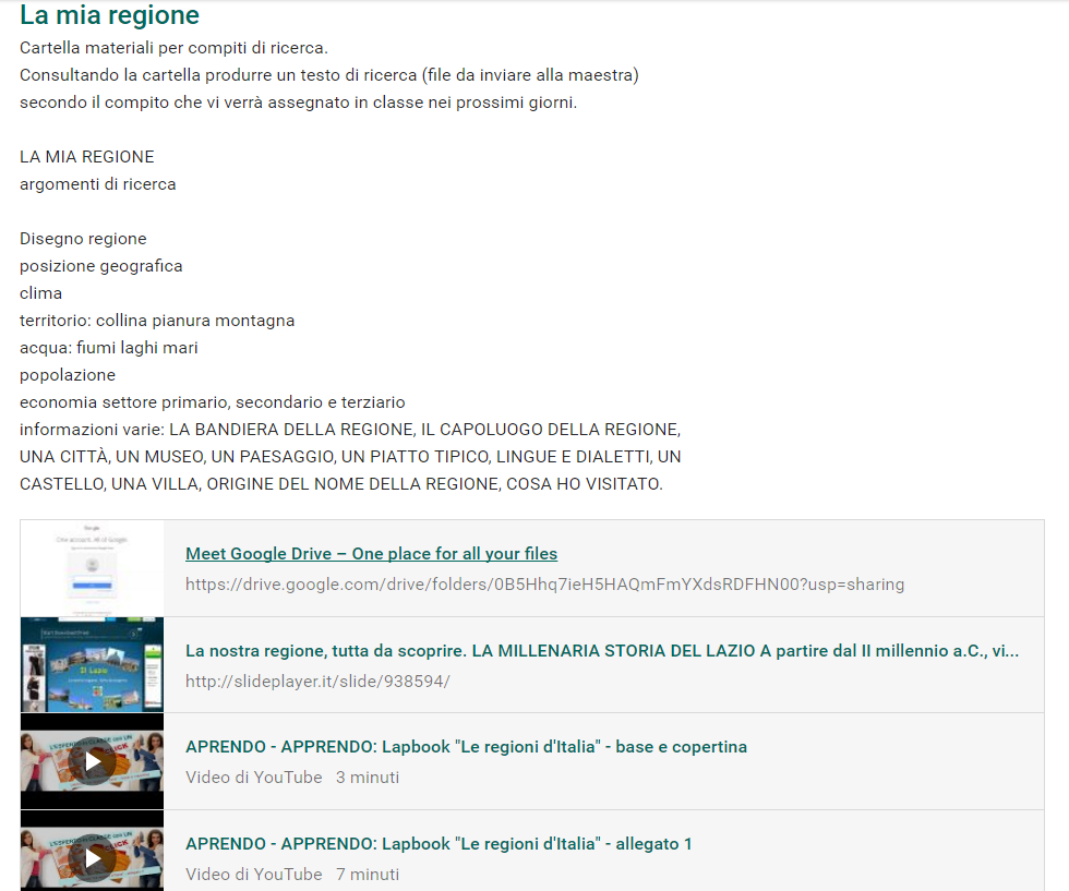 lettura in classe delle informazioni trovate e rielaborate, integrazione delle informazioni tra compagni che avevano lo stesso argomento;