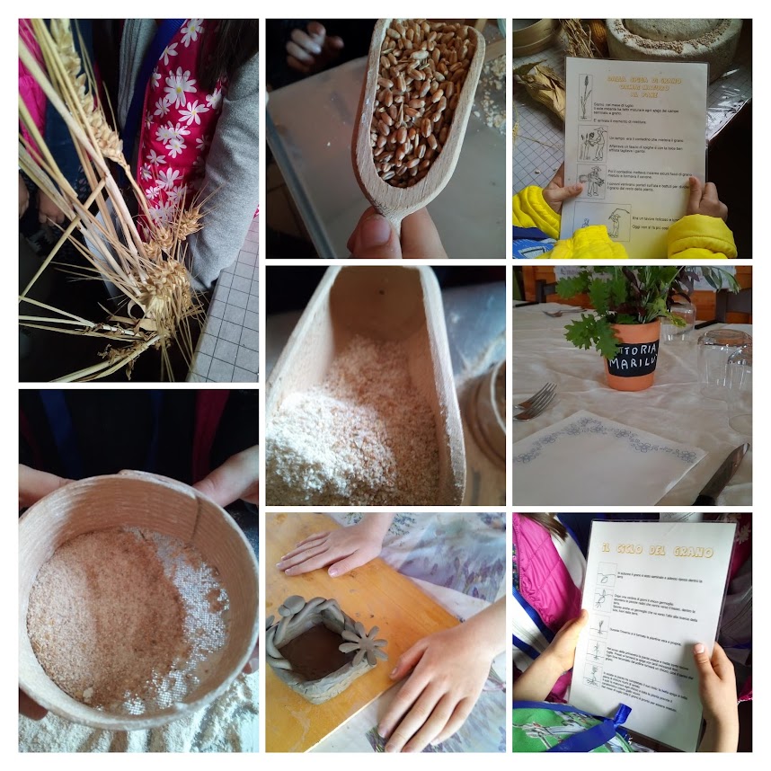 Seguendo un itinerario in fattoria, i bambini hanno passeggiato condotti alla scoperta di fiori, piante e alberi, animali, colori, profumi a volte dimenticati. Hanno conosciuto e riconosciuto prodotti dell'orto e piante officinali e il loro utilizzo nella vita di tutti i giorni. Hanno visitato la piccola esposizione di attrezzi ed utensili utilizzati nel mondo rurale approfondendo il percorso dal grano al pane.