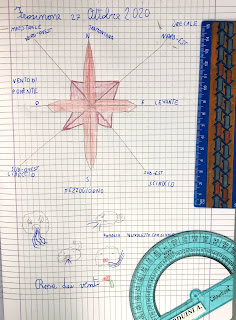 Disegnare la rosa dei venti riflettendo su angoli e gradi, utilizzando strumenti geometrici